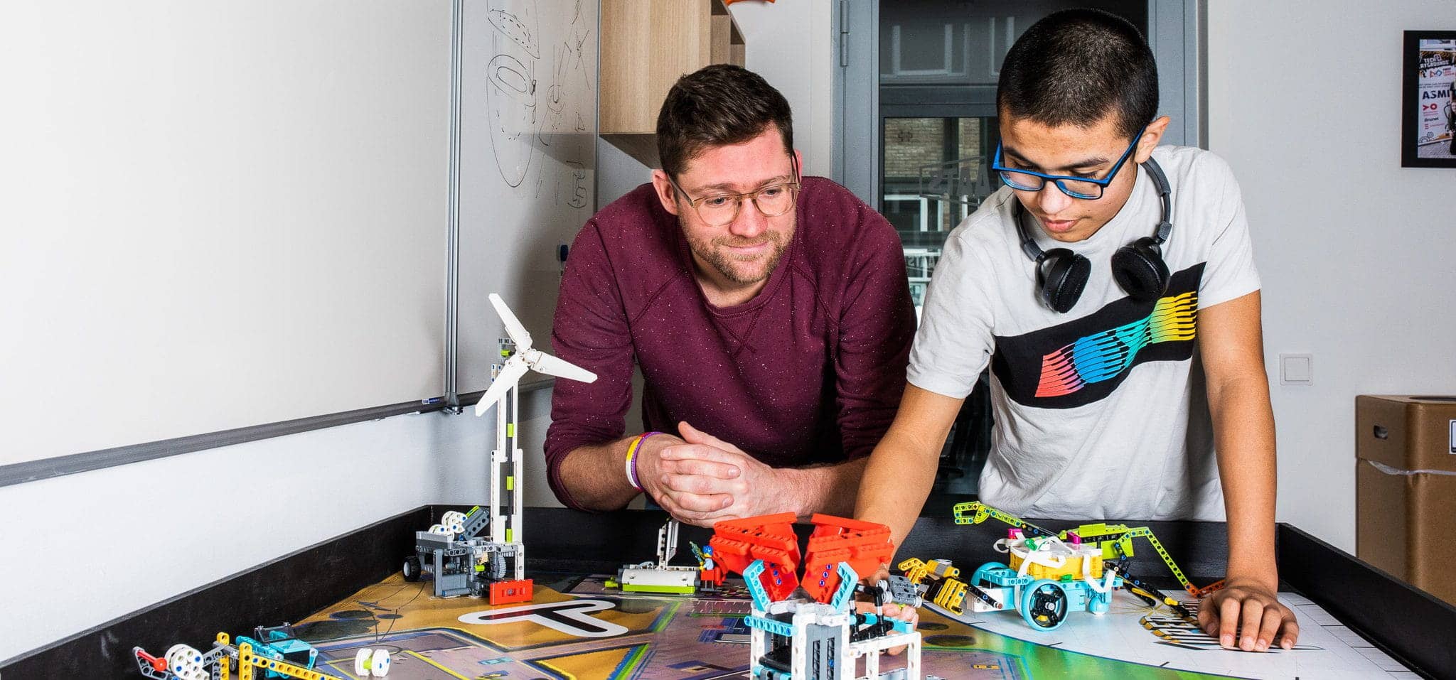 Bij SintLucas staan docenten niet voor de klas, maar tussen de studenten en leerlingen. Het onderwijs is gericht op het samen creëren van een leerervaring waarin studenten een creatieve mindset ontwikkelen die hen ook in latere jaren in staat stelt om vernieuwend te denken en doen, ongeacht de (technologische) gereedschapskist die ze op dat moment tot hun beschikking hebben.