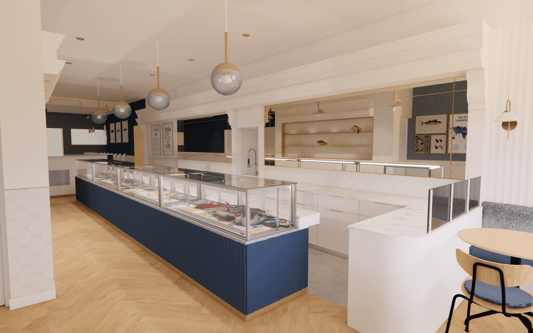 Een grote uitdaging was de beperkte ruimte van het pand. “In de smalle viszaak moesten we ook 26 zitplekken creëren voor de lunchroom. Hiervoor was het belangrijk dat we een creatieve oplossing bedachten.”