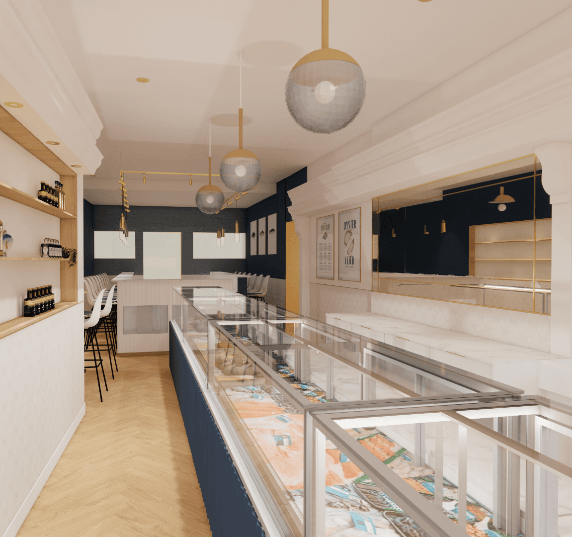 Vanuit zijn onderzoek ontwikkelde Stan het concept Chique/Traditioneel. “Buiten enkele vaste eisen, zoals het behouden van de toonbank voor verkoop, kregen we veel vrijheid in ons ontwerp. Natuurlijk moesten we ook rekening houden met het beschikbare budget,” legt hij uit.