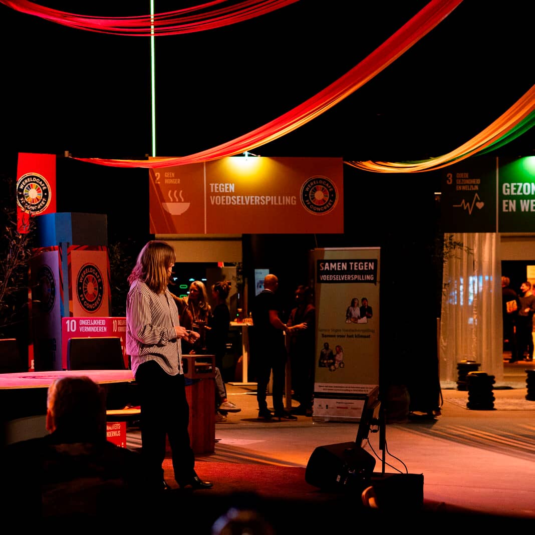 WereldCafé FF Concreet: waar onderwijs, bedrijfsleven en samenleving elkaar ontmoeten Naast de presentaties van de SDG’s is er een inhoudelijk programma met sprekers en interactieve activiteiten rondom de thema’s van de SDG’s. Daarnaast is er volop ruimte om elkaar in een ontspannen sfeer te ontmoeten op het horecaterras of tijdens speciale sessies voor ontbijt, lunch of dinershow.