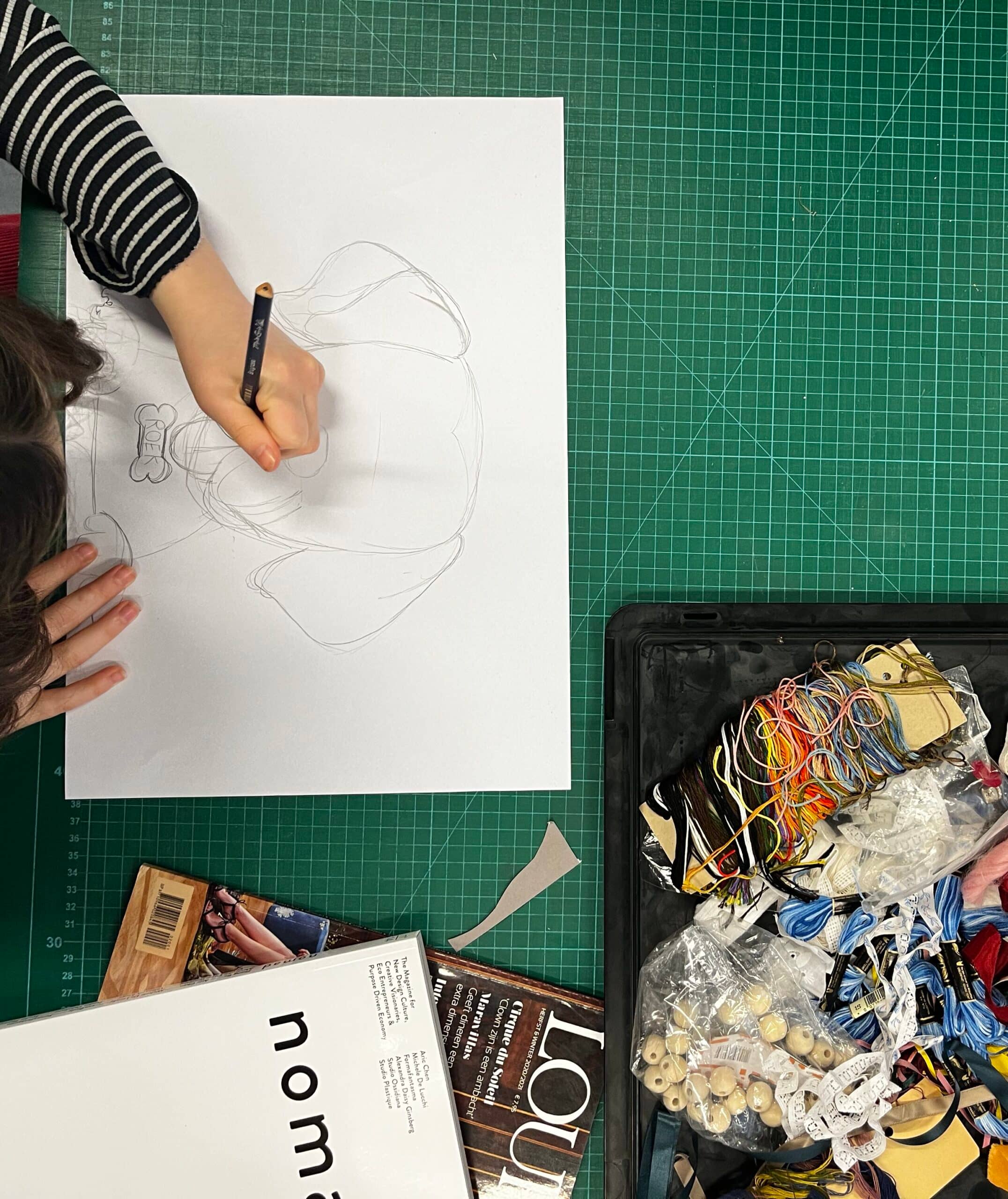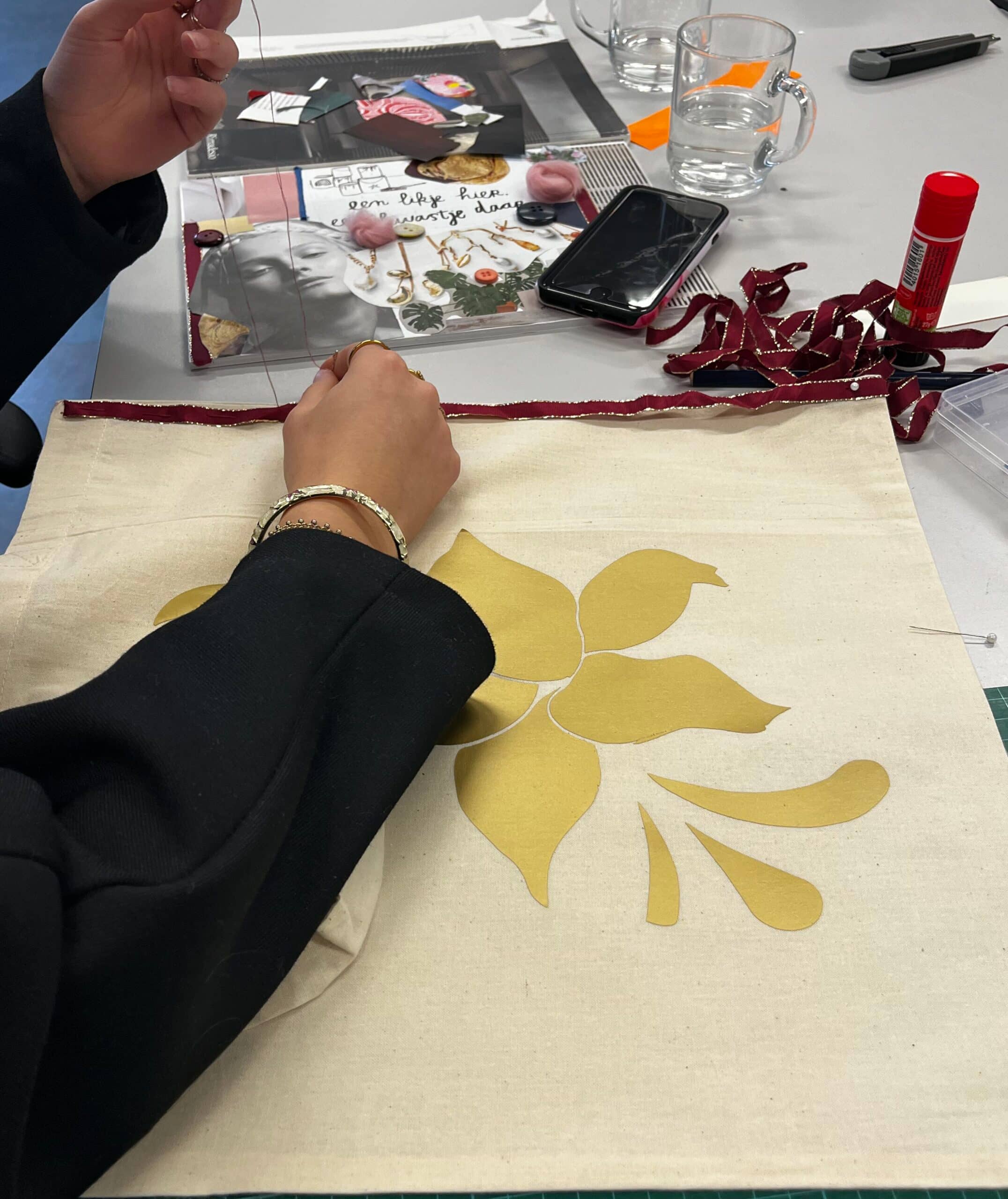 We starten met ontwerpen: moodboard maken, schetsen en deze vervolgens ook uitvoeren. Je legt jouw ontwerp vast op een totebag of neem zelf een wit T-shirt mee om te bedrukken.